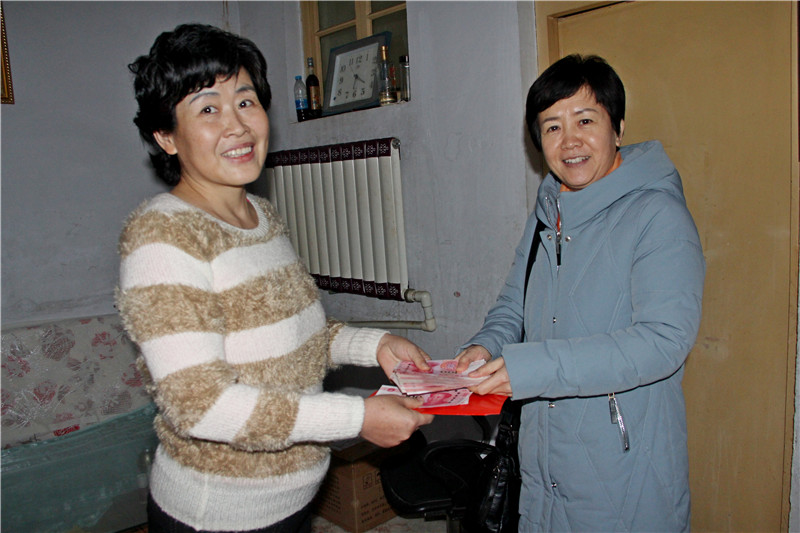 李愛平總經(jīng)理助理為趙鳳娥送上慰問金